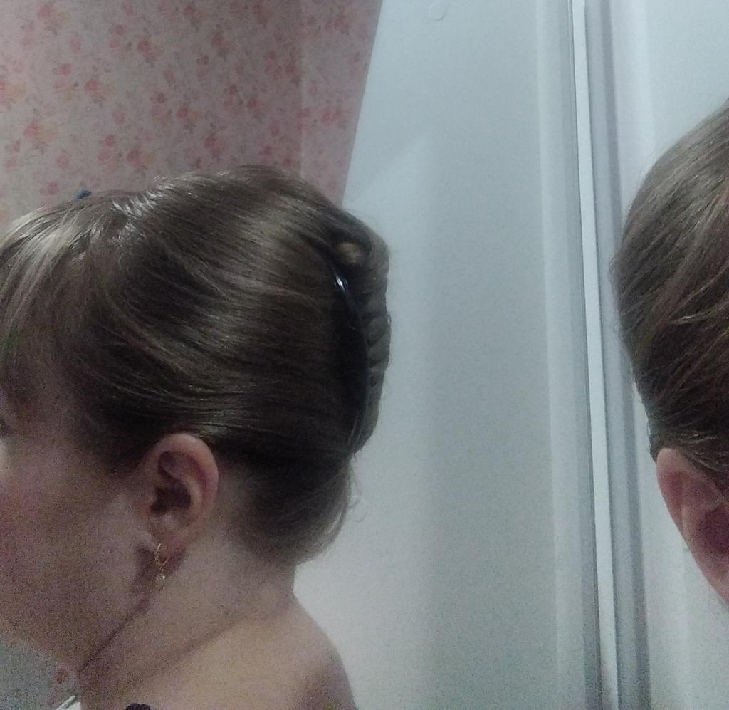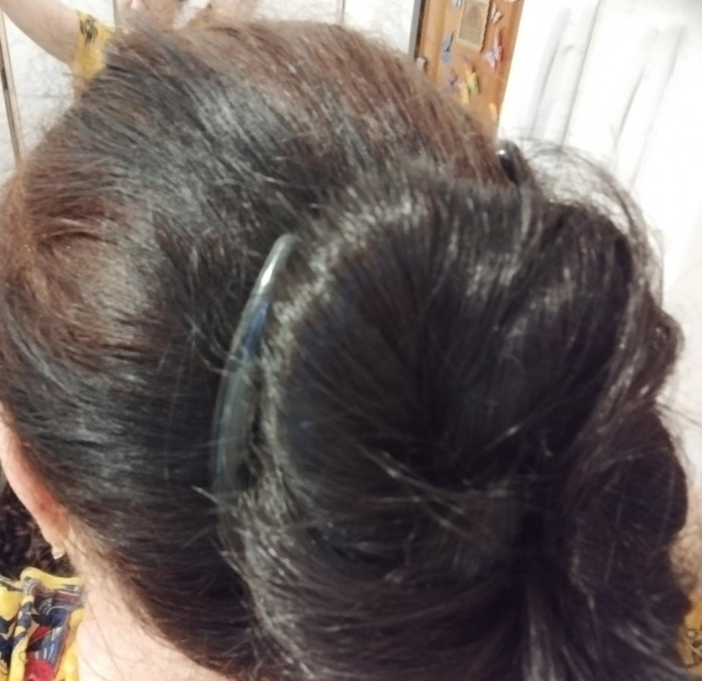 Eine große Haarspange für mein dünnes Haar. Aber es wird dick sitzen, aber damit die Frisur an dieser Haarspange hält, müssen Sie vorher Lack oder Schaum auftragen, kämmen und dann können Sie ruhig gehen)).