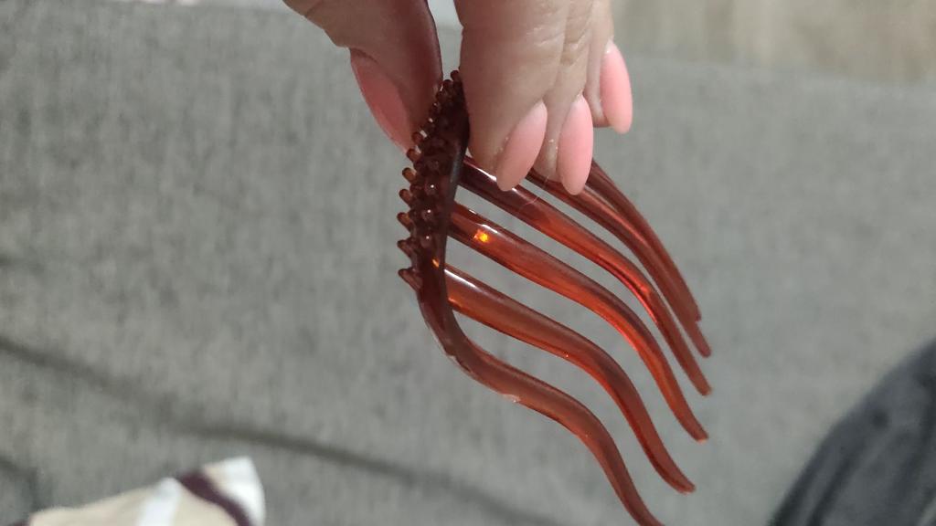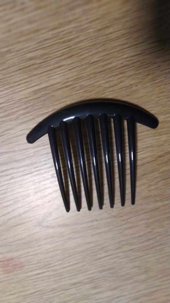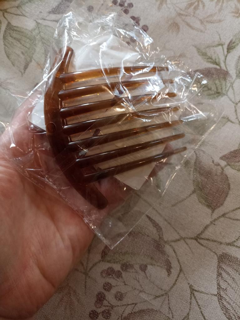 Dies ist meine zweite Bestellung dieses Produkts. Hält das Haar gut und bequem, aber ich wünschte, es hätte einen etwas haltbareren, stärkeren Kunststoff, da bei der ersten Haarspange bei etwas unvorsichtiger Verwendung zwei Zinken abgebrochen sind.