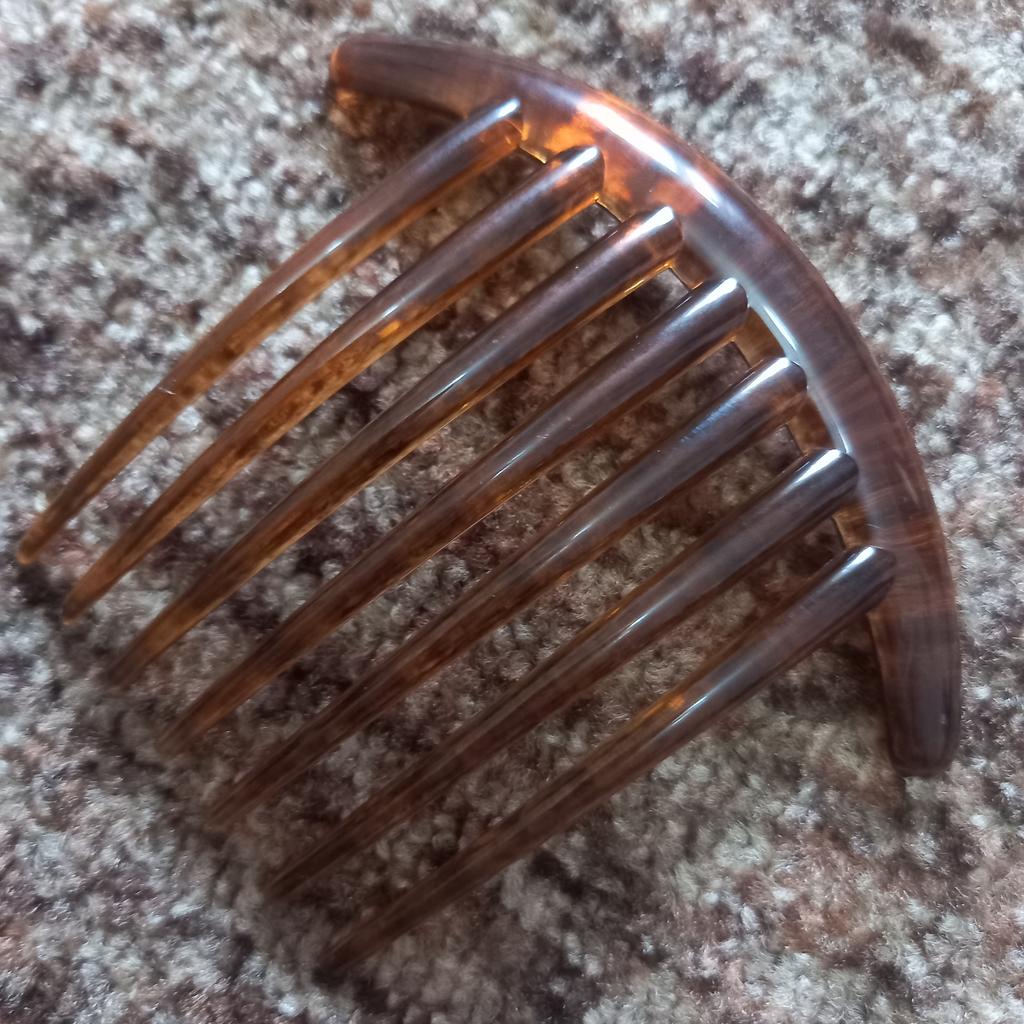 Großer Kamm, hält die Haare gut, kratzt nur die Haut, man muss vorsichtiger beim Feststecken sein