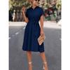 Sommer Kurzarm Casual Shirt Kleid Frauen Elegante Revers Lace Up A-linie Kleid Weibliche Button Up Fashion Party Lose Lange kleider Kleidung 805