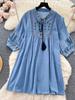 Damenkleid im nationalen Stil mit Stickereien im Retro-Stil, schmale Passform, mittellange Rüschen, Vintage-Gothic-Kleider, elegante Puffärmel, neues Partykleid