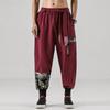 Herrenhose im japanischen Retro-Stil, bestickte Schnürhose, Jogginghose für Herren