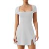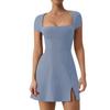 Dieses figurbetonte Kleid mit quadratischem Ausschnitt verfügt über ein kurzärmliges Tanktop und eine elegante, figurbetonte Passform. Freizeitkleid für Frühling, Sommer, Herbst, Winter. Kombinieren Sie es an kalten Tagen mit Jacken und Leggings.