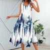 Damen Casual Fashion Rundhals ärmelloses Print unregelmäßigen Saum Midikleid