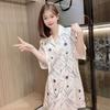 Pyjamarock für Damen im Sommer, dünner Eisseidenpyjama, lockerer Hemdrock mit Leopardenmuster, kann als Oberbekleidung für zu Hause getragen werden