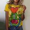 Sommer Damen T-Shirt Abstrakter Cartoon-Druck T-Shirt Harajuku Vintage Kurzarm O-Ausschnitt Top Übergroße weibliche Designkleidung
