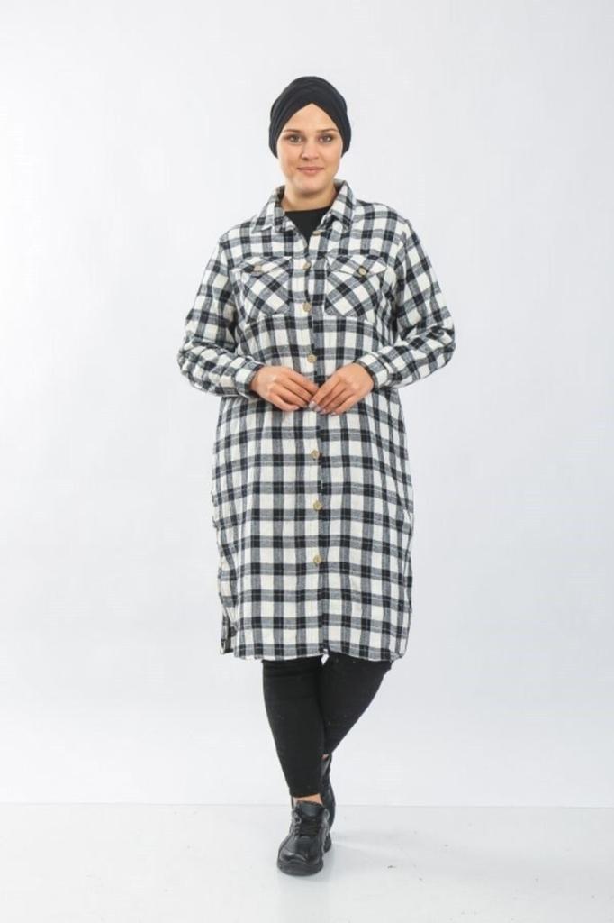 Damenstil Übergröße Hemd Große Größe Dickes Langes Holzfällerhemd - Schwarz und Weiß Verschachteltes Quadrat