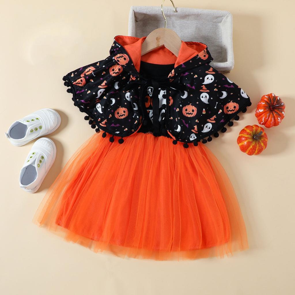 Kleinkind Halloween Bedrucktes Cape Kleid mit Kapuze für Kinder