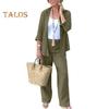 Werten Sie Ihren Stil auf mit diesem schicken zweiteiligen Pendleranzug für Damen aus einem Baumwoll-Leinen-Mix, der bequem und atmungsaktiv ist und den ganzen Tag über für Komfort sorgt.