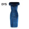Sommerliches Abendkleid, schulterfrei, trägerlos, samtig, schmales Etuikleid, einfarbig, ärmellos, rückenfrei, Cocktailparty, Abschlussball, Midikleid