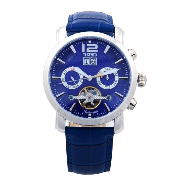 [Ticento]Open Heart Multifunktions-Automatik-Lederuhr TS50201BUBU, Koreanische Luxusuhren