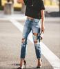 Mode damen loch gerade jeans weibliche getragen kleine bein hosen neue hosen