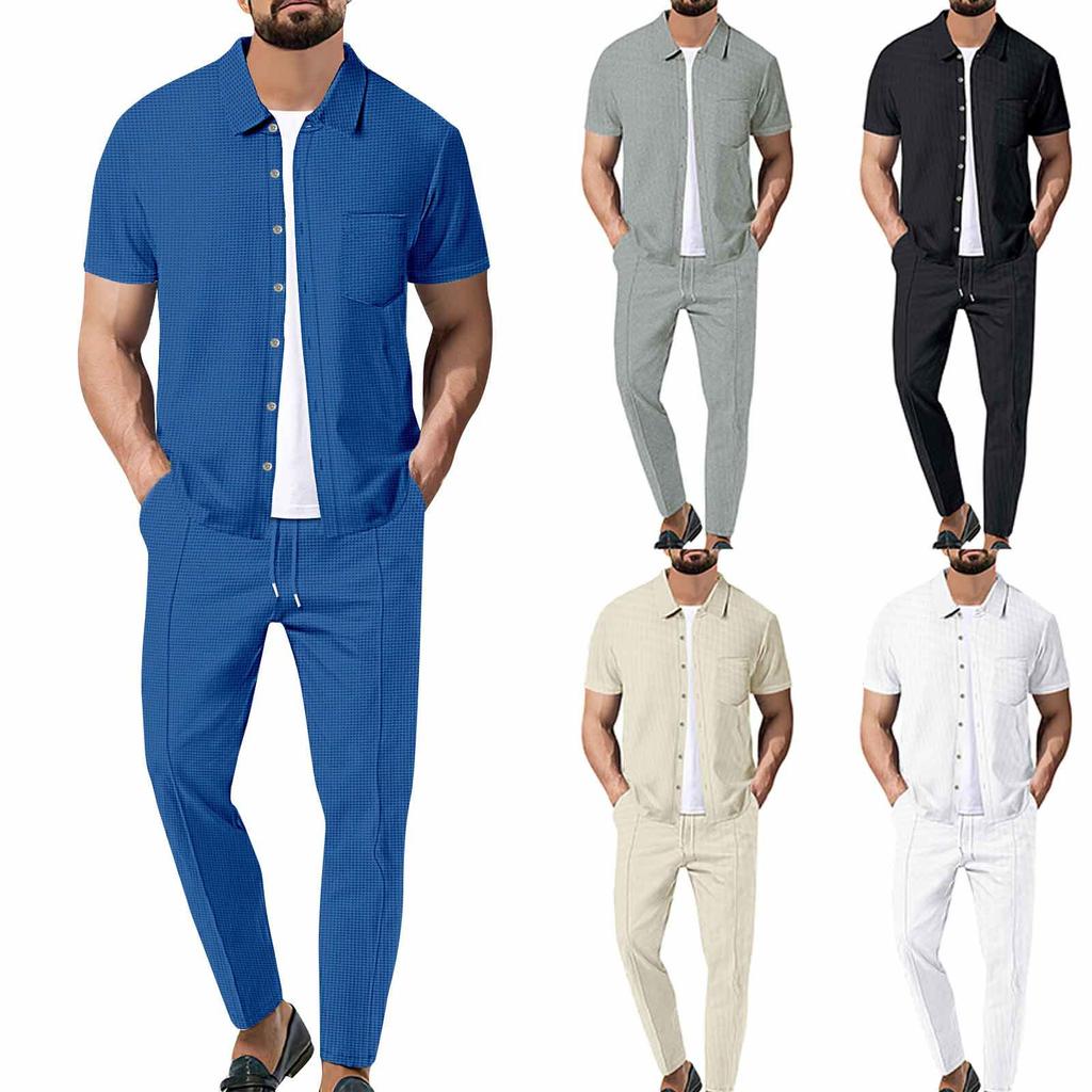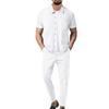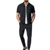Herren Revers Button Up Cardigan Kurzarm Lange Hosen Lässiges Zweiteiliges Set