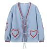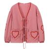 Verleihen Sie Ihrer Garderobe einen Hauch von Retro-Charme mit diesem stilvollen Damenhemd. Dieses modische, lockere, legere Langarmhemd mit lebendigem Karomuster und Herzmusterverzierung an Ärmeln und Saum ist mit hübschen Taschen geschmückt..