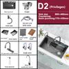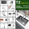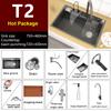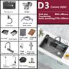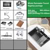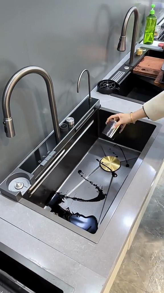 Edelstahl-Wasserfall-Küchenspüle, großes Einzelfach, integriertes Digitaldisplay, Wasserhahn-Set, multifunktionales Waschbecken