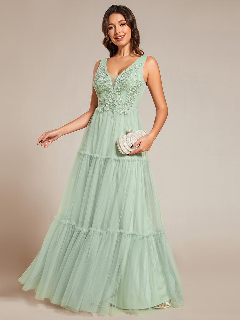 Ever-Pretty Damen Abendkleid, ärmellos, V-Ausschnitt, durchsichtig, mit Applikationen aus Tüll