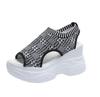 Damen Sandalen Sommer Keilabsatz Elastische Stoffbezüge Fuß Damen Sandalen Dickbesohlte Fashion Trifle Elevation Freizeitschuhe
