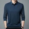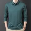 Frühling und Herbst Neues Fake-Zweiteiler Herren T-Shirt Mittelalterlich Lässig Papa Poloshirt Dünnes Revers Gestreiftes Unterteil
