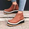 Neue Mode Winter Keilabsatz Damenstiefel Bequeme Stiefeletten Schuhe Runde Zehen 4cm Absatz Reißverschluss Verdickung Botas De Mujer43