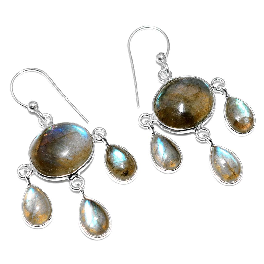 Natürlicher Regenbogen-Mondstein Edelstein Ohrringe Massiv 925 Sterling Silber Handgefertigte Ohrringe Schmuck Geschenk für Frauen und Mädchen E-554