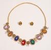 Modische ovale Ohrringe, Vintage-Edelsteine Strass-Anhänger Halskette Stecker-Ohrring-Set Damenschmuck
