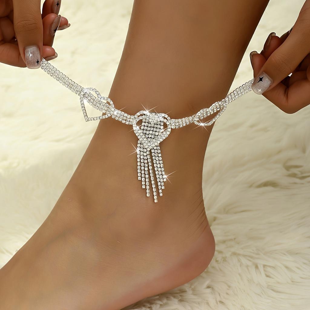 1 Stück Bling Quaste Hohle Herz Klauenkette Fußkettenset mit leuchtendem Wasser Fußschmuck Dekoration Fußkettchen