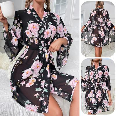 Chiffon-Schlafanzug Bedruckt Leichter Luxus Langärmelig Kühl Nachthemd Bademantel Loungewear