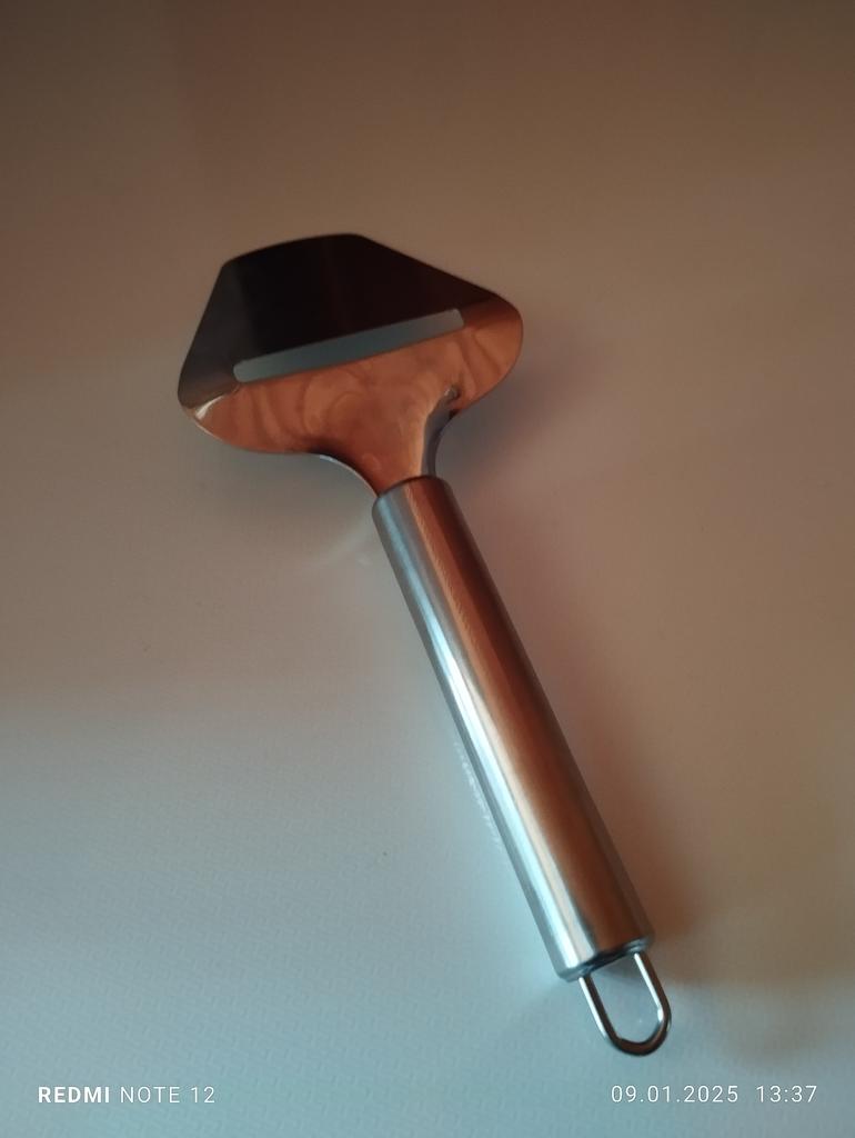 Praktischer Hobel für dünne Scheiben 🧀✨ Der Metallschneider ist hochwertig verarbeitet und liegt gut in der Hand.. Schneidet sehr dünn und sauber — der Käse wird in gleichmäßigen Scheiben 🪄 Geeignet für Hart- und Schnittkäse, die Benutzung ist angenehm und schnell. Ein ausgezeichneter Küchenhelfer, wenn Sie dünne und schöne Schnitte mögen 👍🧀