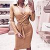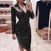 Frauen Damen Sexy Leder Abend Party Club V-Ausschnitt Midi Body Kleid