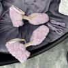 Pelz Damenmode Sexy Pumps Schnürsenkel Chunky Sandalen Sommer Mid Heels Schuhe Neuer Trend Kleid Party Designer Damenschuhe Mujer
