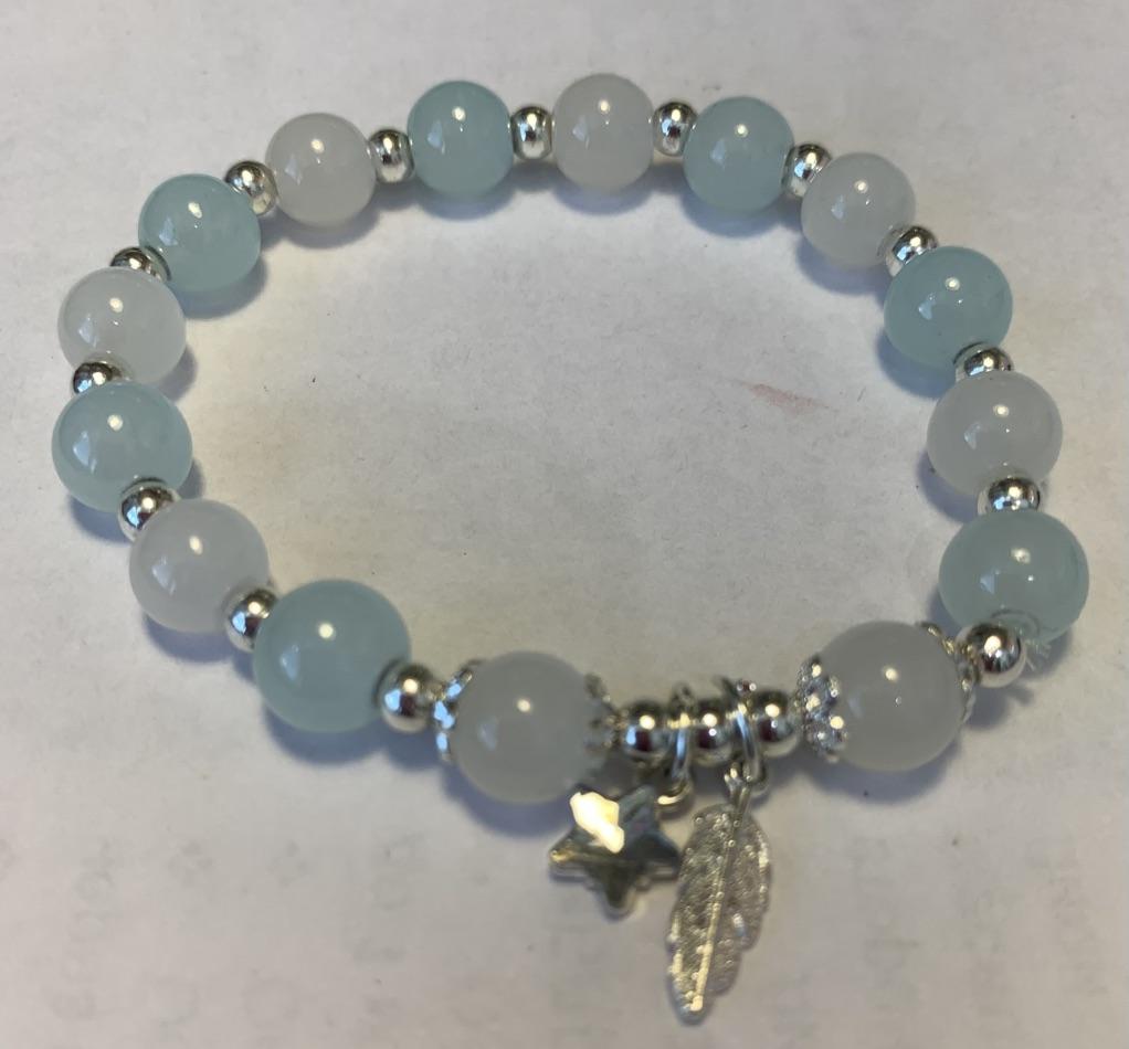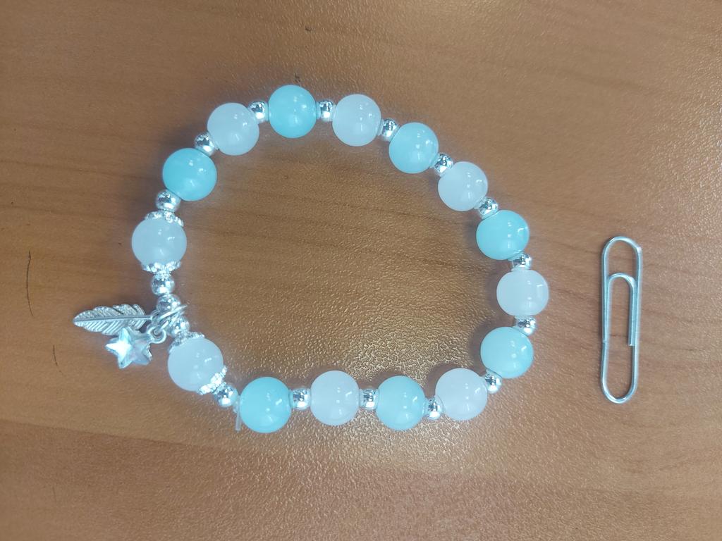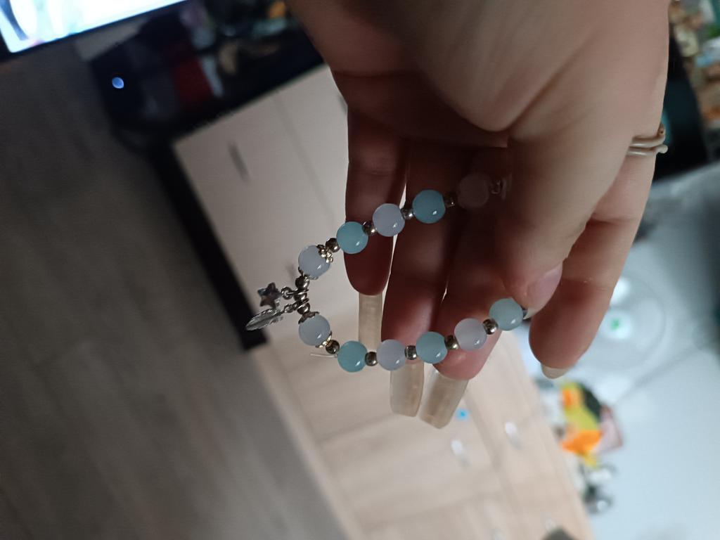 hübsches Armband auf Gummifaden, schade, dass es etwas klein ist (weniger als 17 cm), obwohl es nicht stark spannt