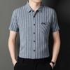 Sommer Neues Kurzarmhemd Junge Herren Dünnes Slim Gestreiftes Echte Tasche Dekoratives Hemd