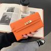 Damen-Geldbörse aus schwarzem Leder mit Drehverschluss und zweifacher Faltschließe