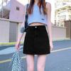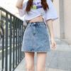 Damen Sommer Dünner Denim Halblanger A-Linienrock, Hohe Taille, Große Größe, Umspielende Hüfte, Schlankmachender Lockenkanten-Kurzrock