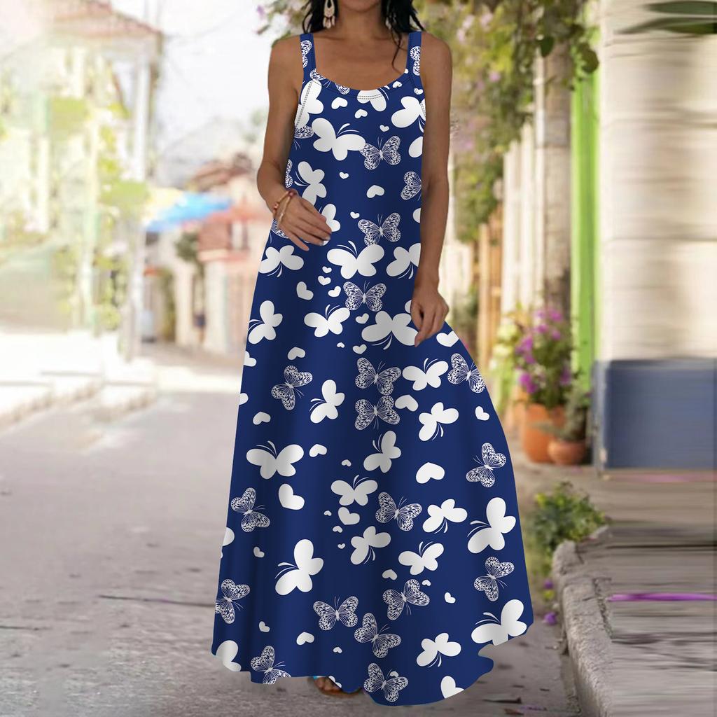 Damen Slip Dress Maxi Langes Kleid Rotes Kettenrosen-Printkleid Frühling & Sommer Freizeit Urlaub