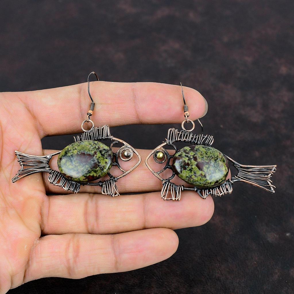 Drachenblutstein Ohrring Kupferdraht gewickelter Schmuck Fisch Ohrringe Handgemacht Echter Edelstein Schmuck Kupferdraht Wickelohrring Geschenke für Mutter