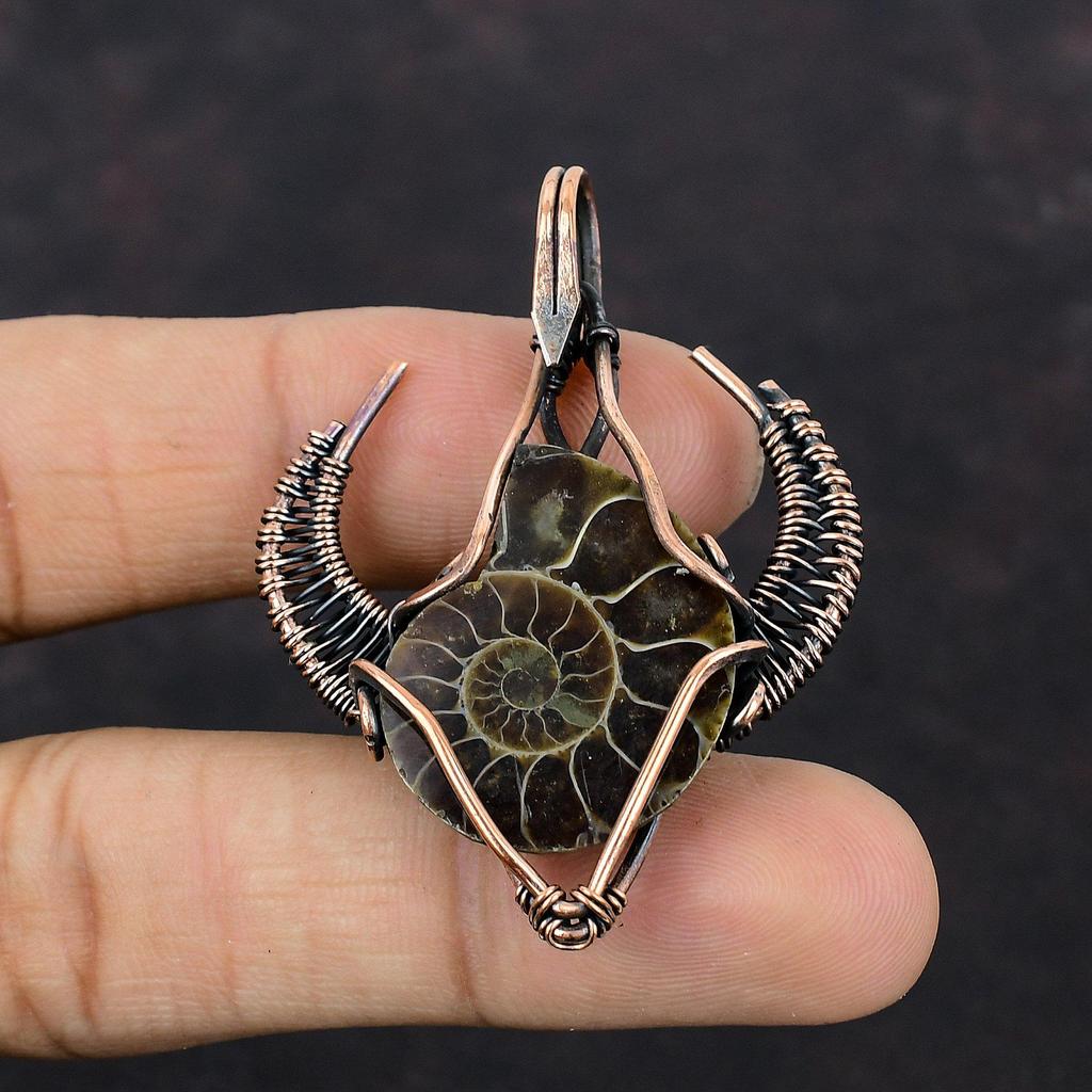 Ammonit Fossil Anhänger Kupferdraht umwickelter Anhänger Edelsteinanhänger Kupferschmuck zum Geschenk Drahtschmuck Handgefertigt Stierkopf Form Anhänger