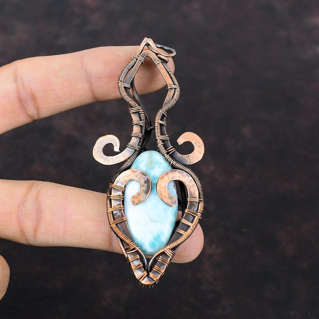 Larimar Anhänger Kupferdraht umwickelter Edelsteinanhänger Handgefertigter Drahtumwickelter Anhänger Larimar Kupferschmuck Hochzeitsgeschenk Ethnischer Stil Anhänger