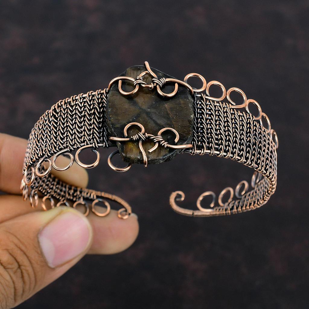 Chiastolith Edelstein Armreif Kupferdraht gewickelt Armreif handgemachtes Armreif verstellbares Armreif Geschenk für Sie Kupferdraht Wickelschmuck
