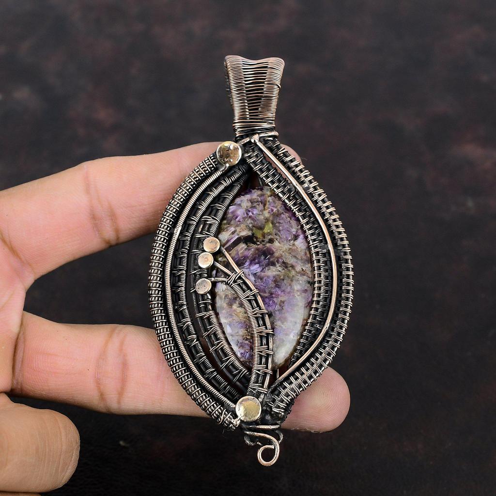 Charoit Anhänger Kupferdraht gewickelter Anhänger Handgefertigter Anhänger Charoit Edelstein Schmuck Antik Kupfer Schmuck Stilvoller Anhänger Geschenk für Mama