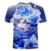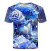 Blaue Rosenlandschaft 3D-bedrucktes, kurzärmeliges, modisches, lässiges T-Shirt für Männer und Frauen