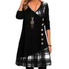 Damen Langarm Casual Loose Kleid Patchwork Verzierter Knopf Plaid Print Kleid