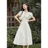 Elegante französische Blattstickerei Tencel V-Ausschnitt Spitze Feenrock Kurzarmkleid Langes Kleid Lässiger Stil Elegantes Kleid