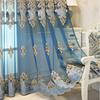 Bestickter blauer römischer bestickter transparenter Vorhang im europäischen Stil für Wohnzimmer, Schlafzimmer, Raumdekoration, Vorhang, Gaze-Vorhang, Heimdekoration