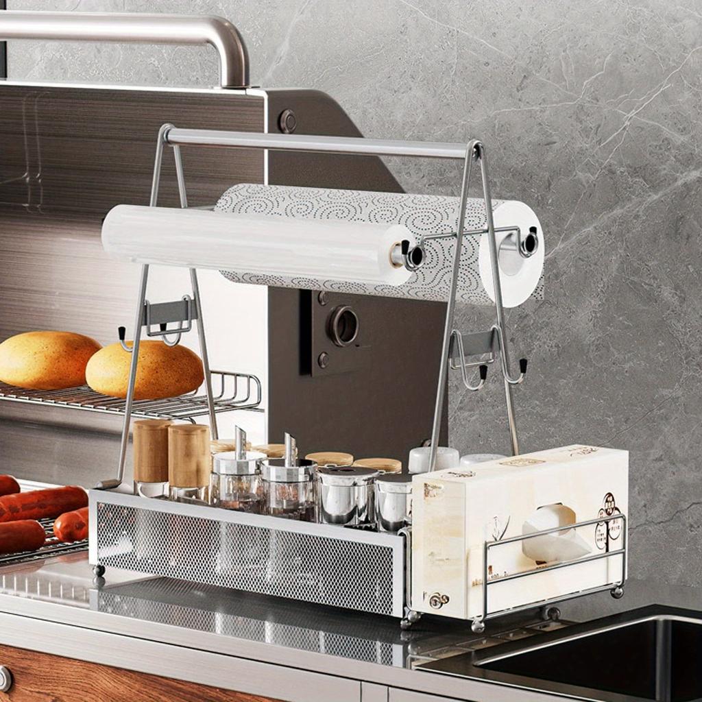 1 Stück Outdoor BBQ Werkzeugablage Gewürzregal Grillrost Würzen, Picknickutensilien BBQ-Ablage mit Papierhandtuchhalter