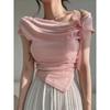 Sommer Sexy Spitze Solide High Street Tops Frauen Süße Bogen Ärmelloses Dünnes T-shirt Weibliche Mode Chic Unregelmäßigen High Street Tees