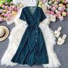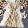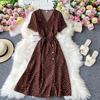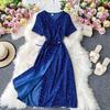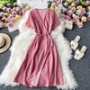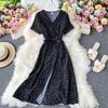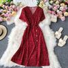 Koreanisches rotes elegantes Kleid Frauen Sommer Strand V-Ausschnitt Polka Dot Midikleid Taille Split Kleider Rosa Blau Schwarz