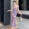 Hot Girl Sexy Strapskleid Urlaub Blumenspitze bedrucktes langes Kleid