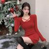 Weihnachten Damen Herbst Strickpullover Kleid Winter Warm Schlank Neujahr Rot Langarm Kleider