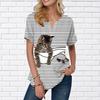 Damen Sommer T-Shirt Bagua Formation Cat Print Kurzarm T-Shirts Lässige bedruckte Oberteile Kleiner V-Ausschnitt Kurze Ärmel